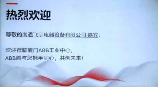 5月30日下午,集团董事长智刚,总裁陈永乐,以及江南注册大厅总经理罗晓明等8位公司领导,到ABB厦门工业中心参观交流,洽谈沟通ABB品牌中压成套开关柜授权生产合作事宜,正式谱写南通飞宇和ABB品牌合作的新篇章。